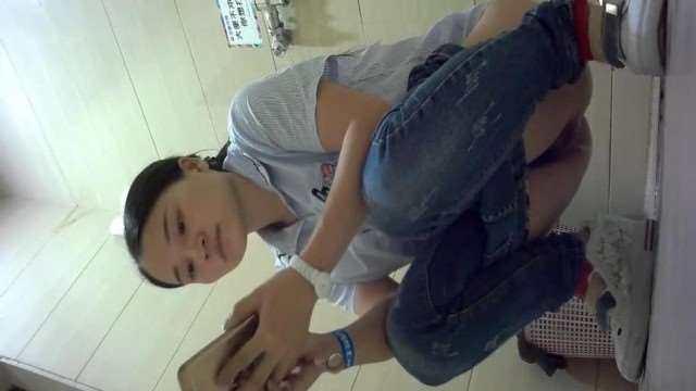 3K原始版全景厕拍-牛仔短裙真方便,短裙往上一卷,内裤往下一扯就OK,难怪那么多女生爱穿